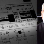 【左】屋久島町が国に提出した虚偽の検査調書【右】国への虚偽報告について取材に応じる屋久島町の荒木耕治町長=2021年12月1日、屋久島空港