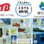 【上左】海底清掃事業を請け負ったJTBパブリッシングが入るJTBグループのロゴとスローガン【上中・上右】「屋久島町ふるさと納税」と屋久島町のロゴ(町ウェブサイトより)【下】屋久島町がJTBパブリッシングに業務委託して制作した観光ガイド冊子「るるぶ特別編集 屋久島」
