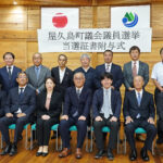 屋久島町選挙管理委員会は9月22日、前日に投開票された町議選を受けて「当選証書附与式」を開き、当選した14人に当選証書を手渡した。
